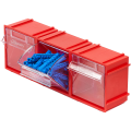 Для удобства пользователей внутренние контейнеры изготовлены из прозрачного пластика, что открывает визуальный обзор на содержимое. Ячейки откидные легко извлекаются и устанавливаются, а также имеют систему защиты от случайного опрокидывания. Это альтернатива пластиковым лоткам для склада, преимущества которой можно оценить во время инвентаризации и частых взаимодействиях обслуживающего персонала с боксами и их содержимым. Конструкция помогает поддерживать чистоту и порядок в рабочих помещениях.