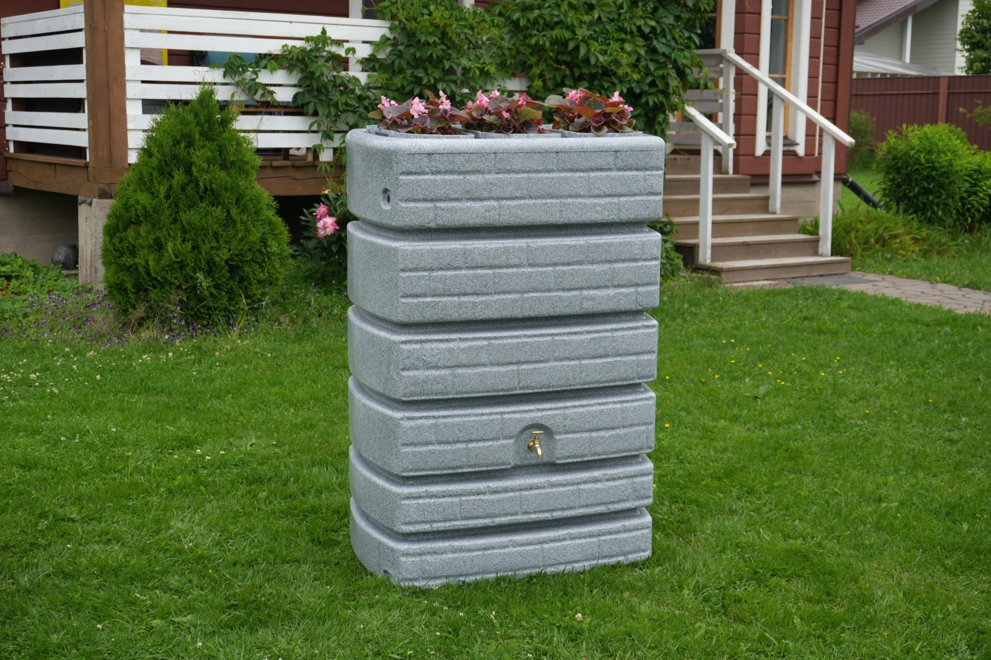 Для сбора дождевой воды мы разработали декоративную емкость Stone 500 литров. Изделие выполнено в прямоугольной форме с рёбрами жесткости. Главная визуальная черта которой, объёмные текстуры камня и кирпича. Такое дизайнерское решение добавит облику строения дополнительный декоративный элемент.