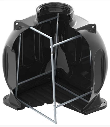 - Устанавливаем опору нижнюю на дно колодца в углубление между 1-м и 2-м ребром.