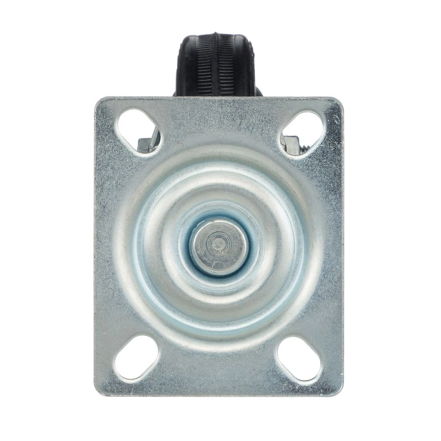 Колесо поворотное 4001-75, диаметр 75мм., грузоподъемность 50кг. Колеса из черной литой резины, центр из двух гальванизированных дисков из штампованной стали. Роликовый (игольчатый) подшипник расположен в углублении, выдавленном под прессом, и содержит цилиндрические ролики подшипника. Кронштейн изготовлен прессованием из листовой стали. В поворотном узле двухрядный шарикоподшипник. Возможно применение на относительно грубых полах складов, заводов, производственных и строительных площадках. Данные колеса можно использовать на неровных поверхностях, во влажной окружающей среде и использовании вне помещения, не рекомендуется применять в среде с органическими растворителями, хлорированными веществами, гидрокарбонатами и минеральными маслами. Температура эксплуатации от -20 до +70С.