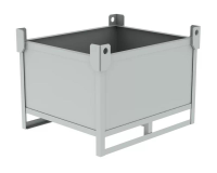 Цельносварной для складирования с направляющими под вилы погрузчика и проушинами под грузозахватные механизмы. Заполнение: Лист – 1,2 мм. Основание поддона 2 мм. Высота поддона 150 мм. цвет: синий, RAL 5005. Покраска в любой цвет по шкале RAL + 5%. Возможно изготовление по индивидуальным размерам.