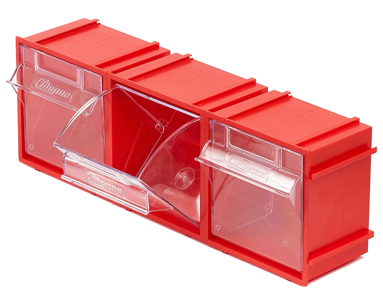 Комплект из 5-ти коробов откидных Стелла-техник F-105-1 (105х87х112мм.), красный, прозрачный служит для хранения мелкоштучных предметов. Данные короба с помощью специальных пазов соединяются друг с другом по всем четырем сторонам, благодаря чему, пользователь может выстроить систему хранения по желаемым ему габаритным размерам. Внутренние ячейки короба не подвержены случайному опрокидыванию. Откидная ячейка обеспечивают быстрый доступ к необходимым предметам. В случае необходимости полного высыпания или наполнения внутренние ячейки легко извлекается. Полезный внутренний размер ячеек 88х65х70мм. Специальный пластик, из которого выполнен короб, выдерживает значительные нагрузки и обладает оптимальной эластичностью. На задней стенке короба присутствуют отверстия для крепления, через которые можно легко прикрепить к стене, как отдельно каждый, так и целый собранный набор из коробов, любого количества. Обзорность содержимого сквозь прозрачные внутренние ячейки, наличие отсека для информационных бирок, легкое извлечение внутреннего короба для опустошения и наполнения, все это является неоспоримым преимуществом откидных коробов серии F. Температура эксплуатации от -10 до +70С.