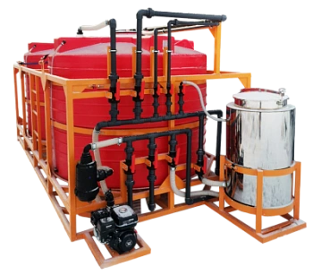 Мобильный растворный узел предназначен для приготовления и транспортировки растворов средств защиты растений (СЗР) и жидких комплексных удобрений (ЖКУ). Он устанавливается в кузов или прицеп автомобиля и может работать как в стационарных условиях, так и в процессе движения.