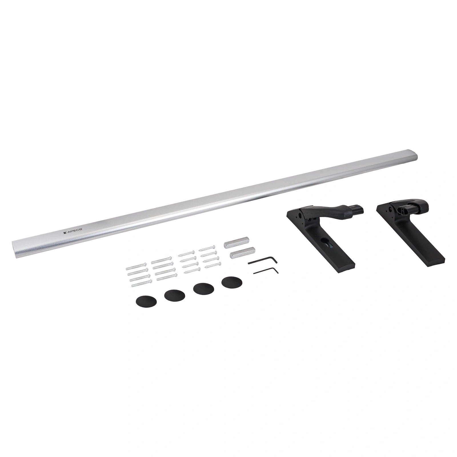 Комплект ручек (1 шт.), штанга (1 шт.), декоративные заглушки (4 шт.), квадрат 9мм (1 шт.), винт (8 шт.), саморез (8 шт.), шестигранный ключ (2 шт.), документация (1 шт.).