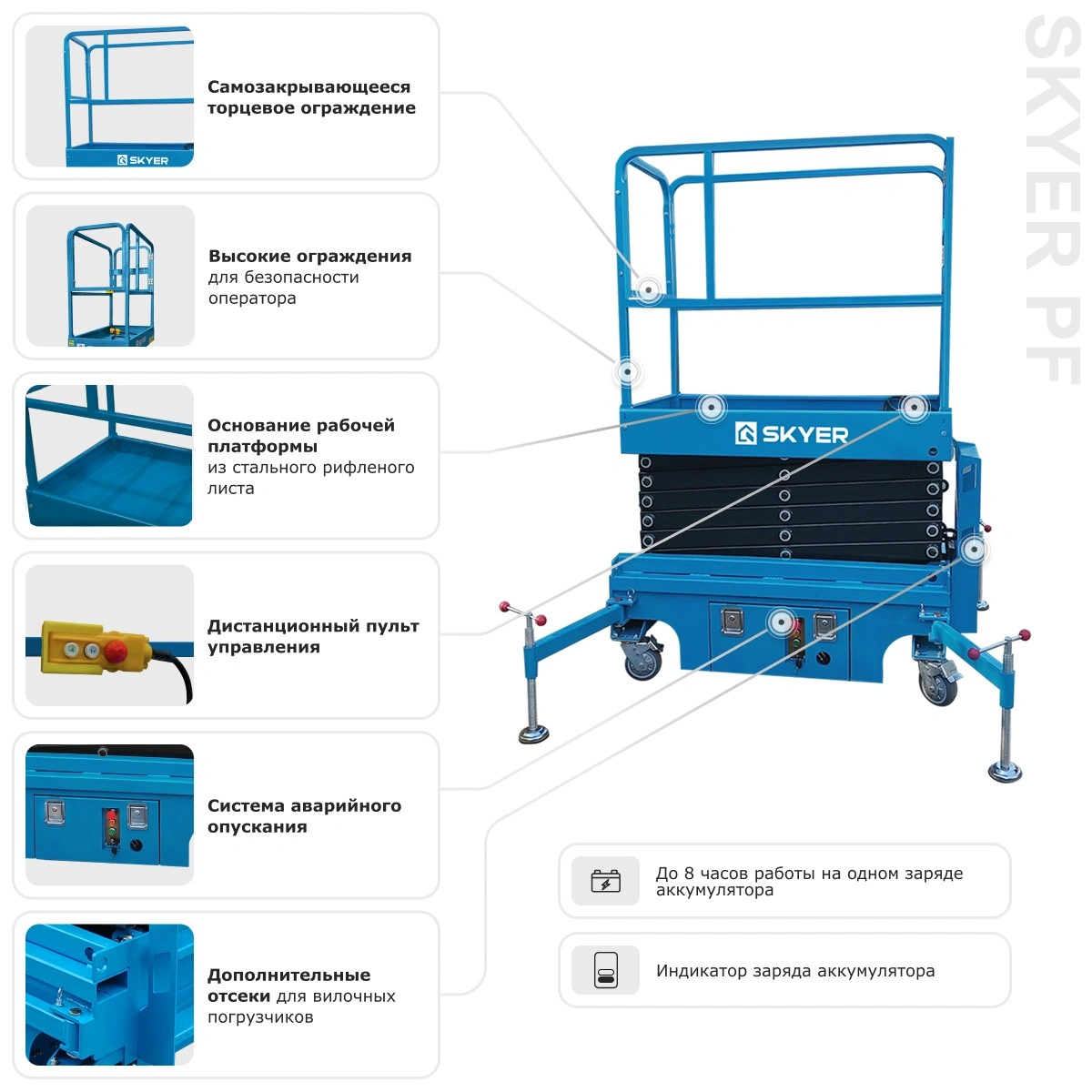 Ножничный подъемник PF0624 — компактный помощник для работы на высоте до 6 м!