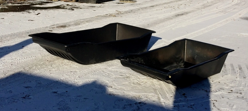 Сани компактные, легкие изделия быстро переносятся и крепятся к технике или упряжкам во время экспедиций, походов, рыбалки и охоты. Пластиковых саней для снегохода, мотобуксировщика или ручного перемещения грузов, изготавливаются методом ротоформования, цельнолитые.