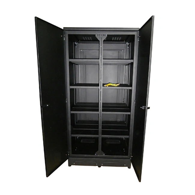 В дверях, на задней и верхней панели и имеются вентиляционные отверстия для обеспечения циркуляции вoздуxa. Во избежание несанкционированного доступа дверцы запираются на ключ. Кабинеты комплектуются высококачественными батареями DELTA, изготовленными по технологии AGM (Absorbent Glass Mat — электролит, абсорбированный в стекловолоконном сепараторе).