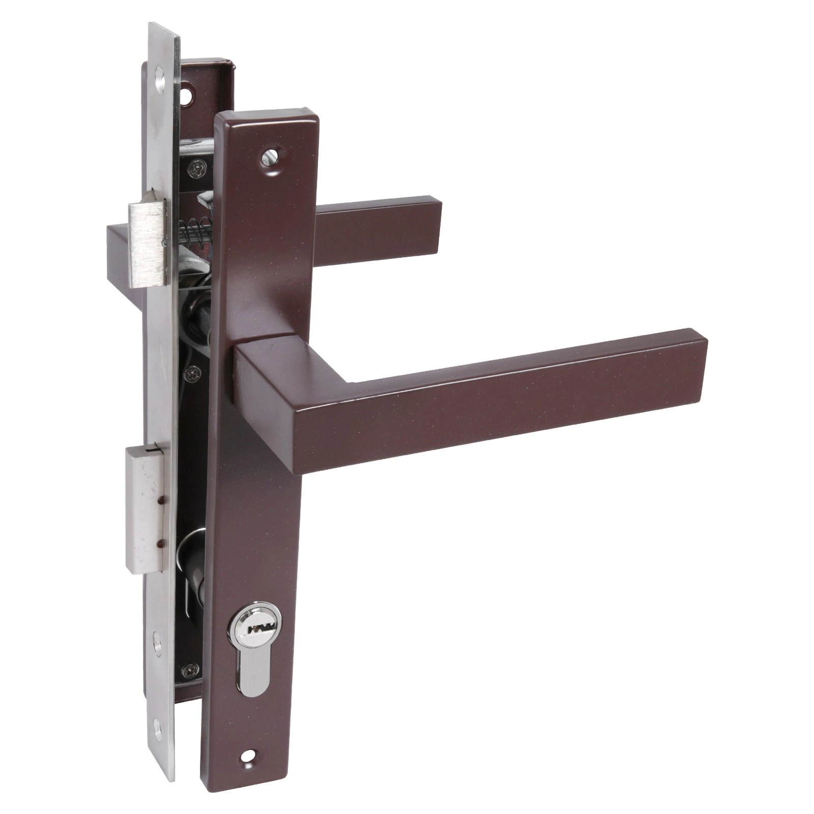 Прямоугольный ригель, вылет 10,5 мм. Универсальная защелка. Корпус и торцевая планка из нержавеющей стали. Межосевое расстояние 85 мм. Удаление ключевого отверстия 20мм. Полимерное покрытие ручек по каталогу RAL, материал сталь. Механизм секрета с перфоключом, длина 70 мм, ключ/ключ. 5 ключей. Материал - цинковый сплав.