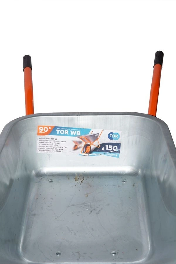 Строительная одноколесная тачка TOR WB - это мобильное средство, для для транспортировки различных строительных материалов и инструментов на строительных площадках. - Грузоподъемность 150кг - Объем кузова 90л - Толщина стенки кузова 0,7мм - Кузов из оцинкованной стали - Пневматическое колесо 387мм с подшипником Преимущества использования одноколесной строительной тачки заключаются в ее мобильности, малых габаритах и простоте управления. Она может проехать по узким проходам, подъехать к труднодоступным местам и маневрировать в ограниченном пространстве. Одноколесная тачка также легко маневрирует на неровных поверхностях и переносит большой вес, что упрощает транспортировку материалов Используется в строительстве зданий, дорог, мостов, туннелей, а также при проведении ремонтных работ. Основными потребителями одноколесных строительных тачек являются строительные компании, ремонтные бригады, а также частные лица, занимающиеся ремонтом или строительством на своей территории.