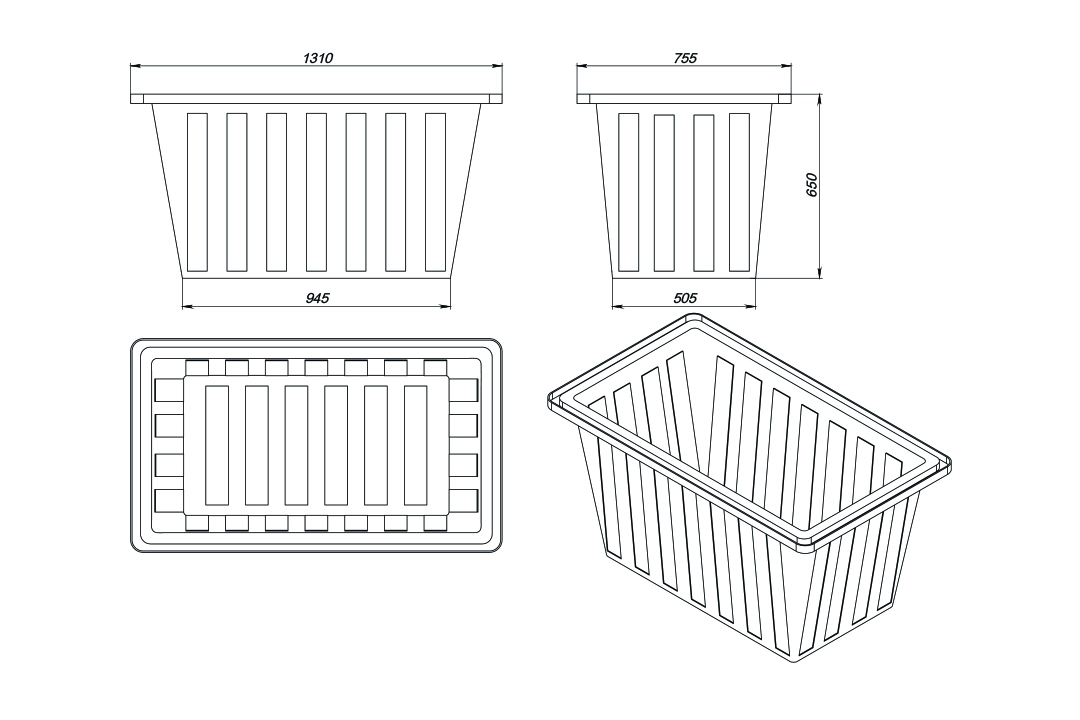 Ванна изготовлена из первичного пищевого полиэтилена - материала, стойкого к химическому воздействию. Он не меняет свойств хранящихся в емкости продуктов, не впитывает запахи, не выцветает, легко моется и дезинфицируется.Ванна изготовлена методом ротационного формования - ее корпус цельнолитой и 100% герметичный. Ванна может эксплуатироваться при температуре от -30 до +60°.