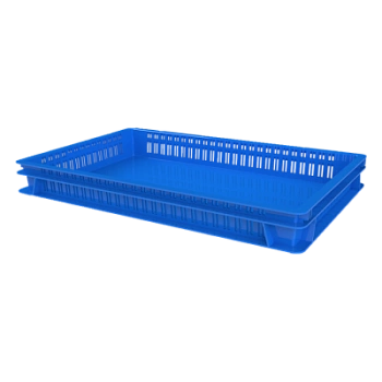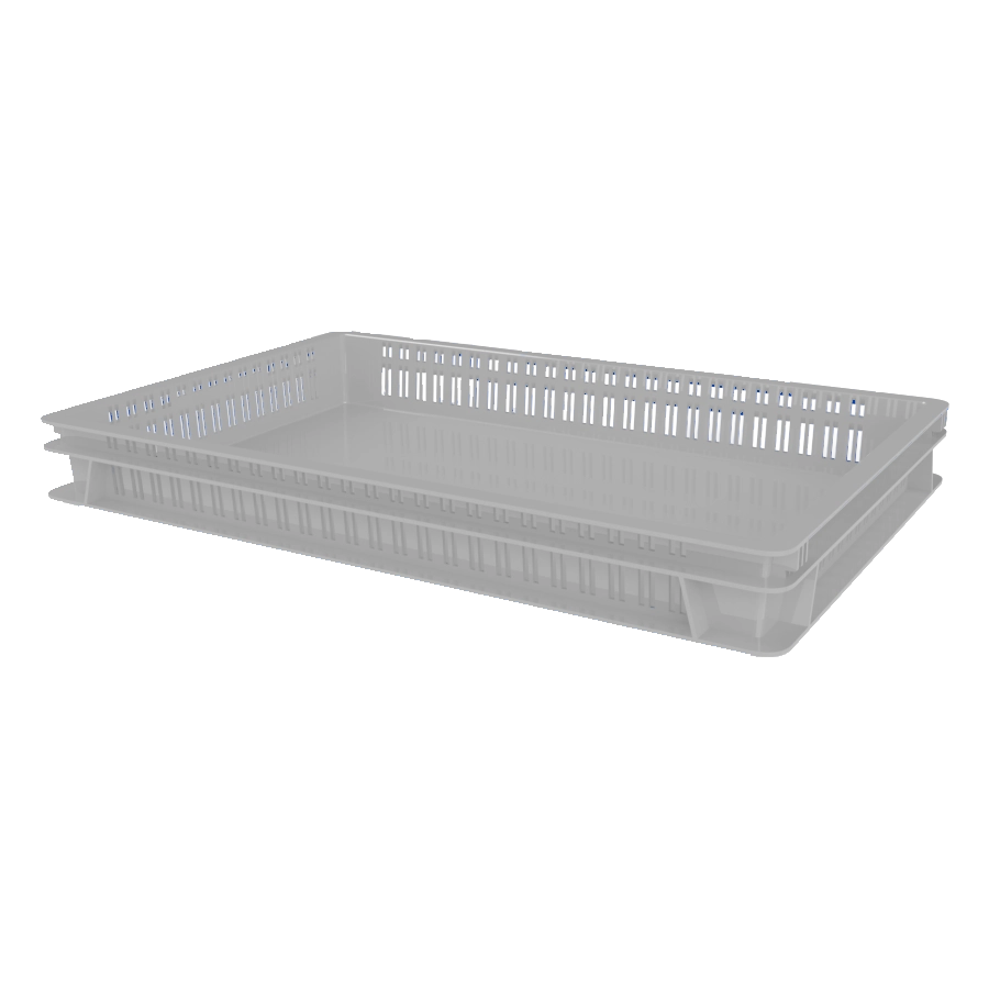 Версия контейнера со сплошным дном и перфорированными стенками обеспечивает хорошую вентиляцию содержимому и позволяет транспортировать к потребителю готовую продукцию или полуфабрикаты в замороженном виде. Перфорация позволяет быстро замораживать продукт за счет равномерного обдува холодным воздухом. Сплошное дно предохраняет содержимое от пыли и влаги при хранении и транспортировке.
